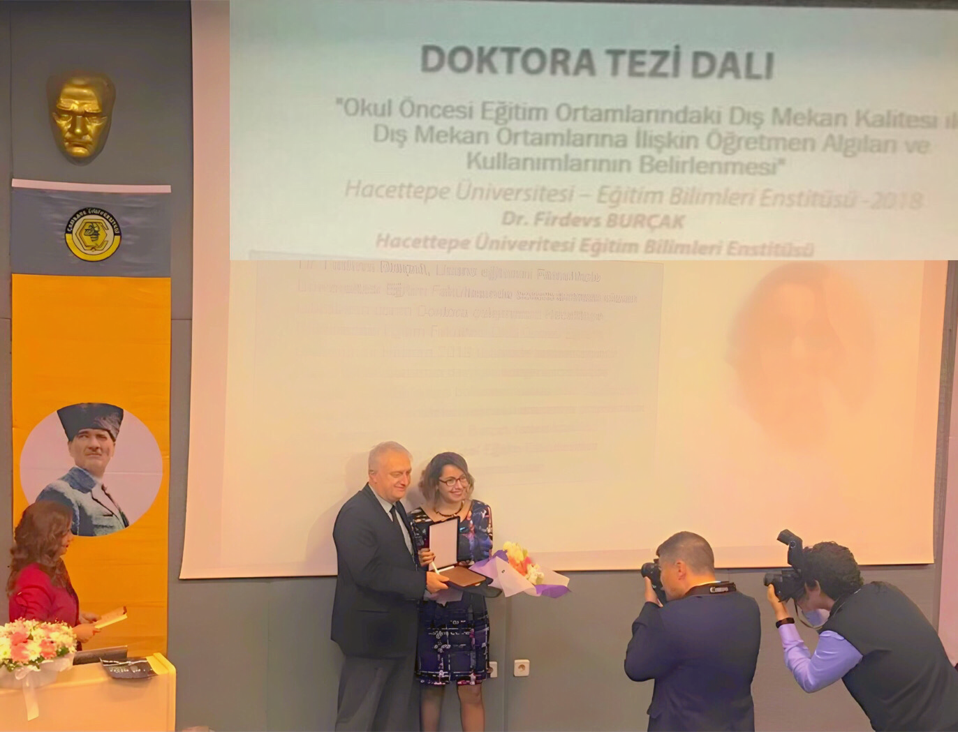 Dr. Firdevs Burçak “Okul Öncesi Eğitim Ortamlarındaki Dış Mekan Kalitesi ile Dış Mekan Ortamlarına İlişkin Öğretmen Algıları ve Kullanımlarının Belirlenmesi” doktora tezi ile 2019 yılında Nafi Atuf Kansu EğitBilim Araştırmaları Ödülü’ne layık görülmüştür.
